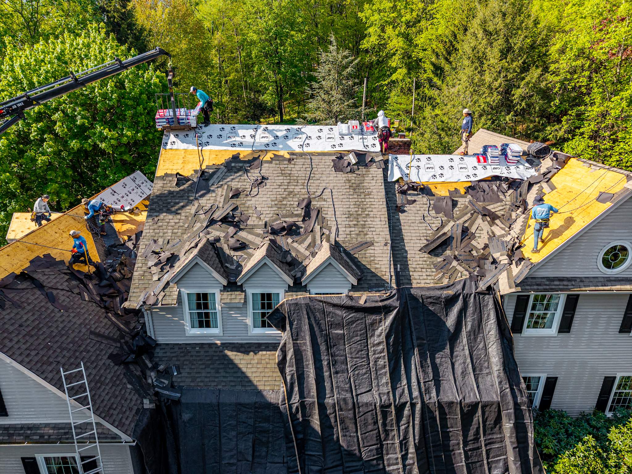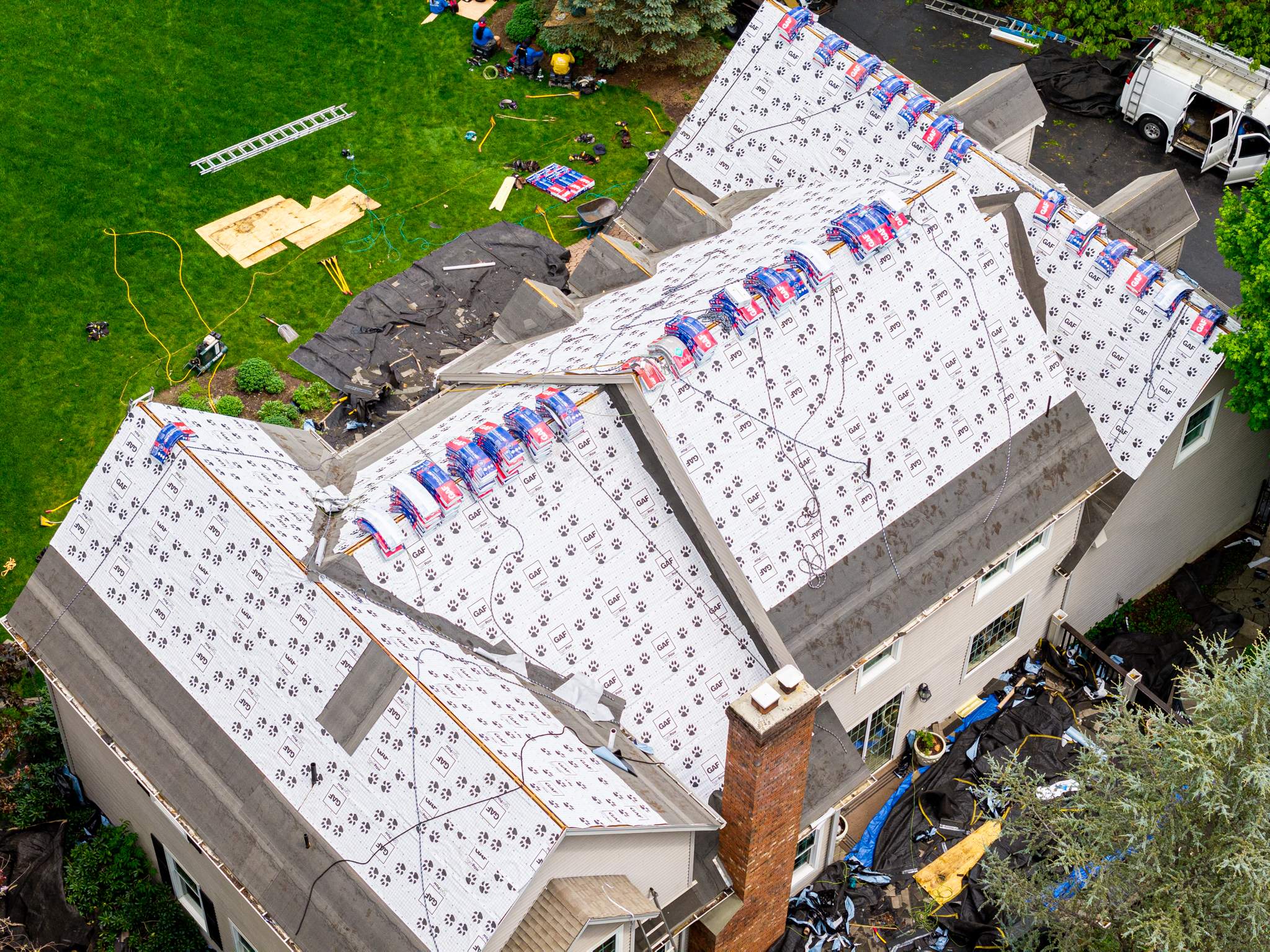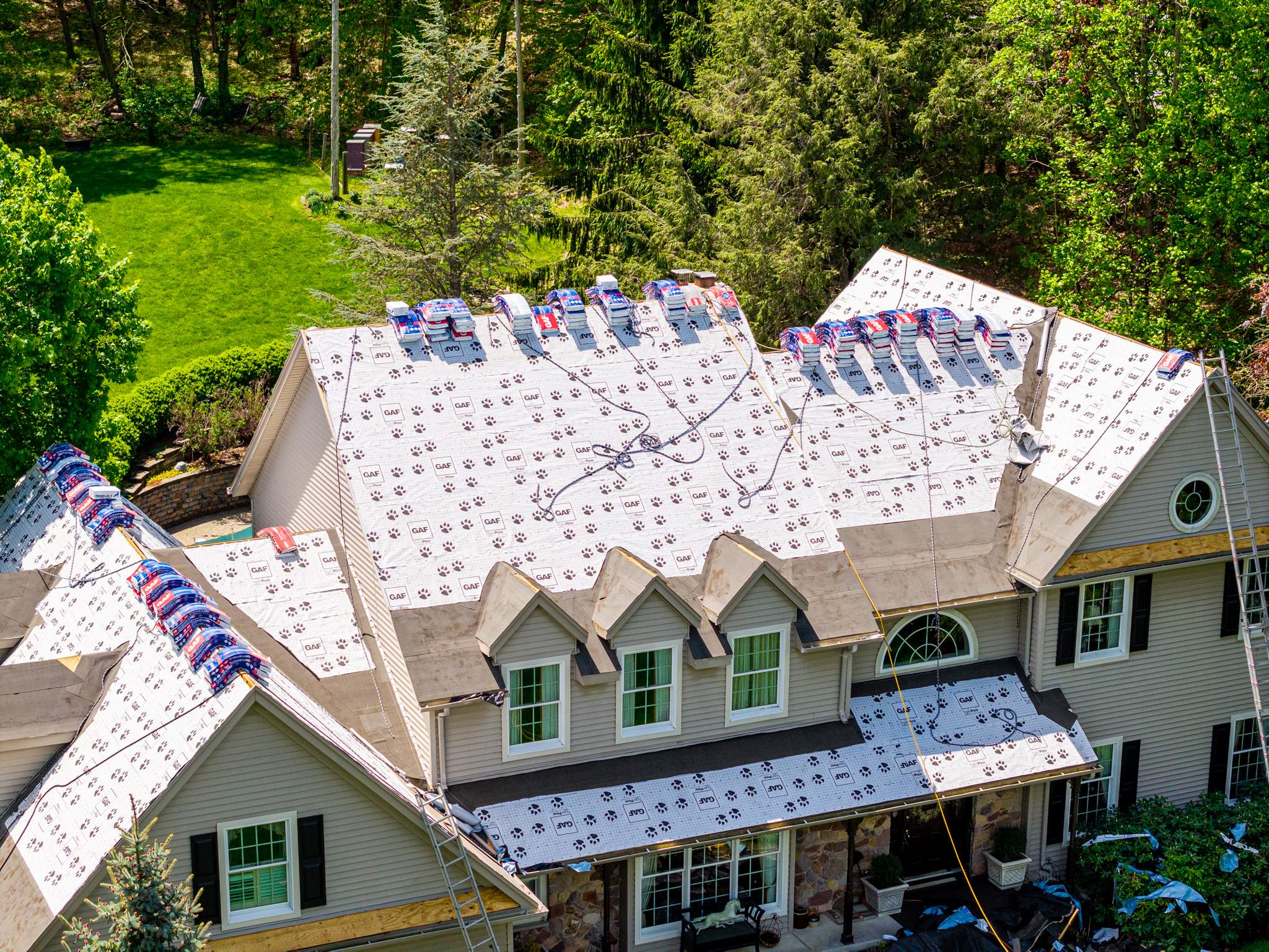 This roof replacement project was completed on a residential home in Sparta, NJ, with the goal of delivering a long-lasting, weather-resistant roofing system while enhancing the overall appearance of the property. The project began with a full tear-off of the existing shingles, allowing for a complete inspection of the roof decking. Any areas showing signs of wear, moisture damage, or compromised plywood were addressed to ensure a solid foundation for the new installation.